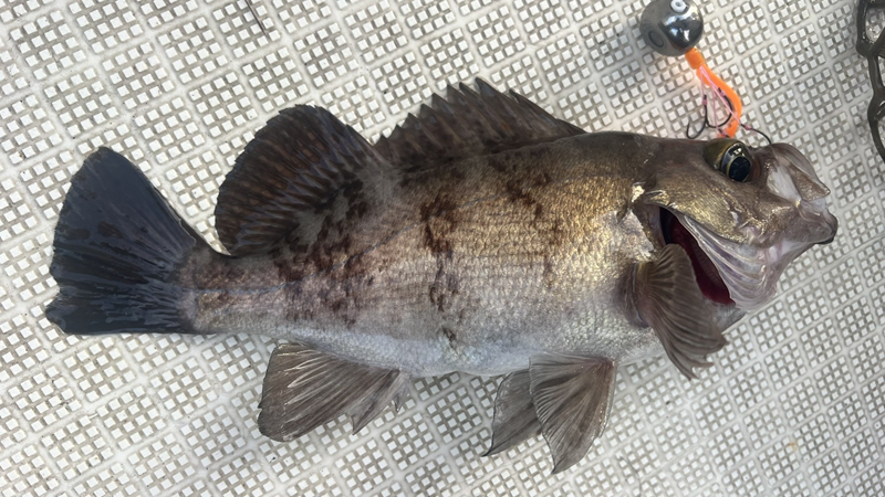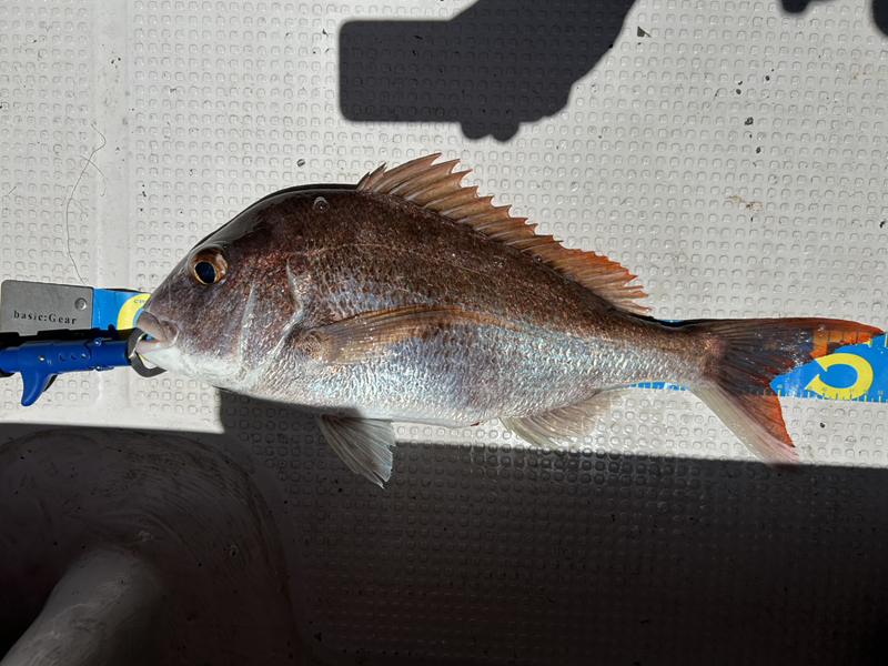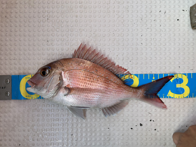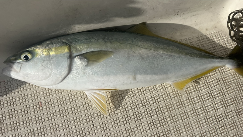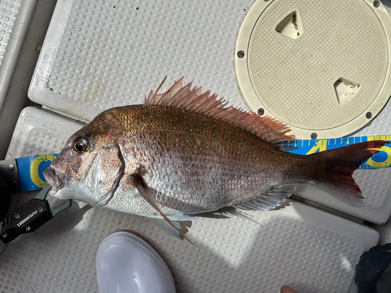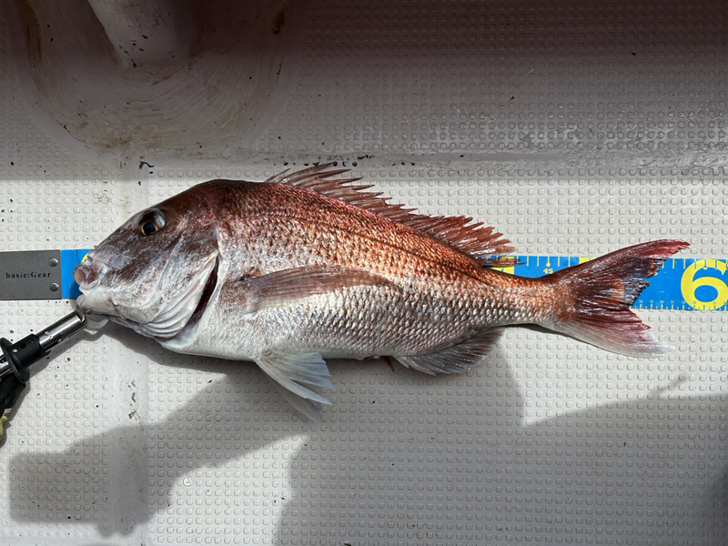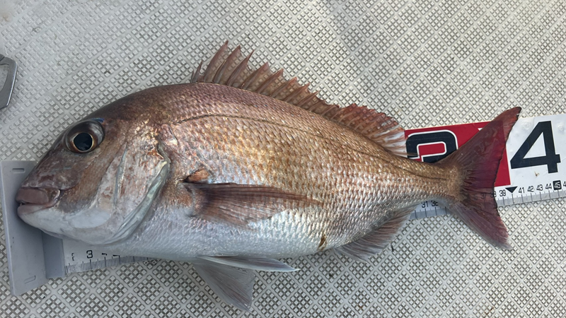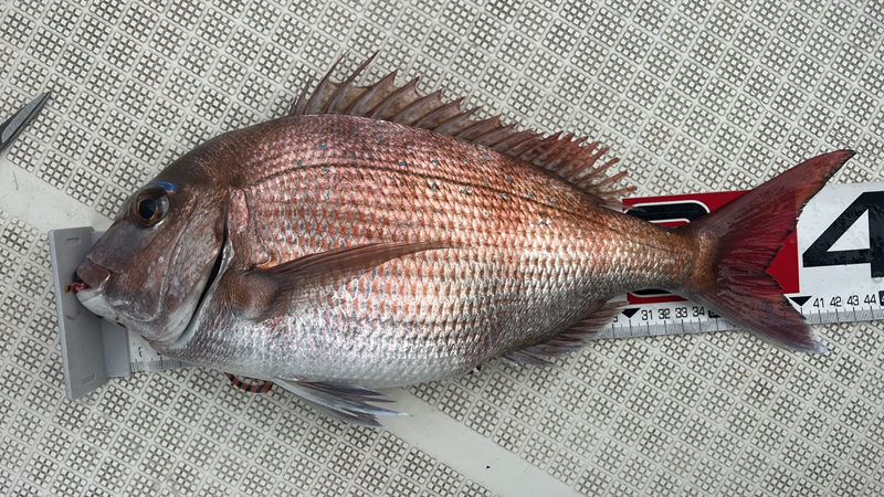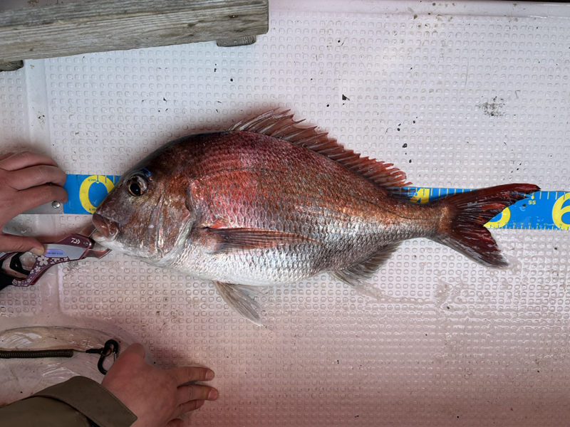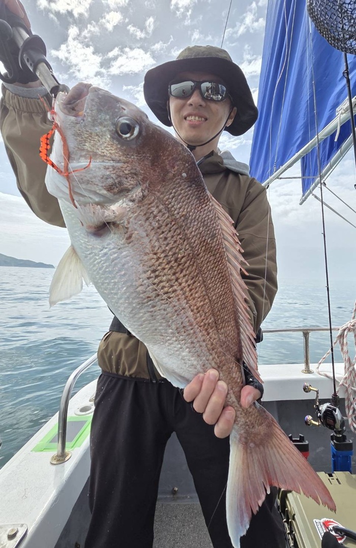 僕の操船する颯綾丸に待望のヒット!43cm!