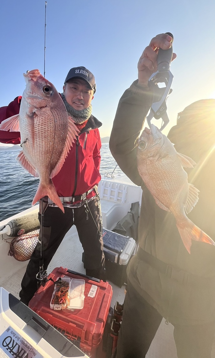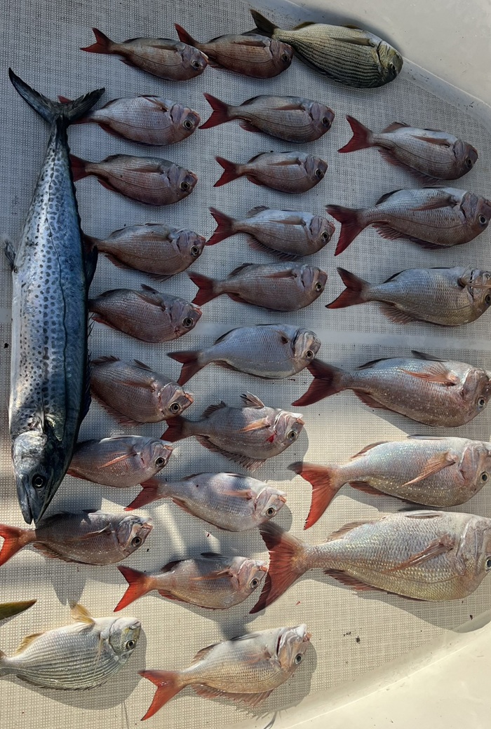結果、お二人で真鯛26枚(内ヘダイ×2枚)、サワラ×1、メジロ×1で終了