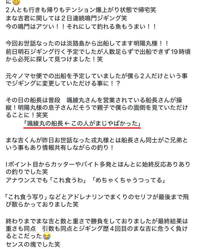 オヤジから『ドタキャンされたけどそのあと入ったから舵持てよー!』
