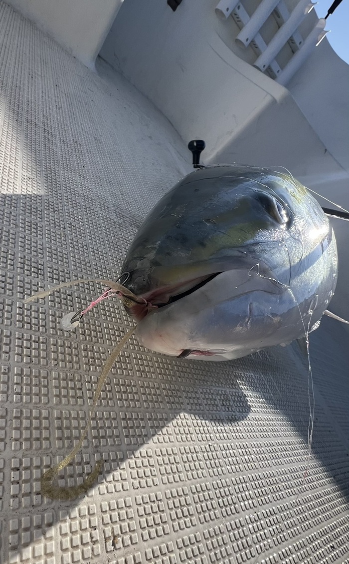 鰤にかかってる、髪の毛ほどラインの細さがわかるはずです